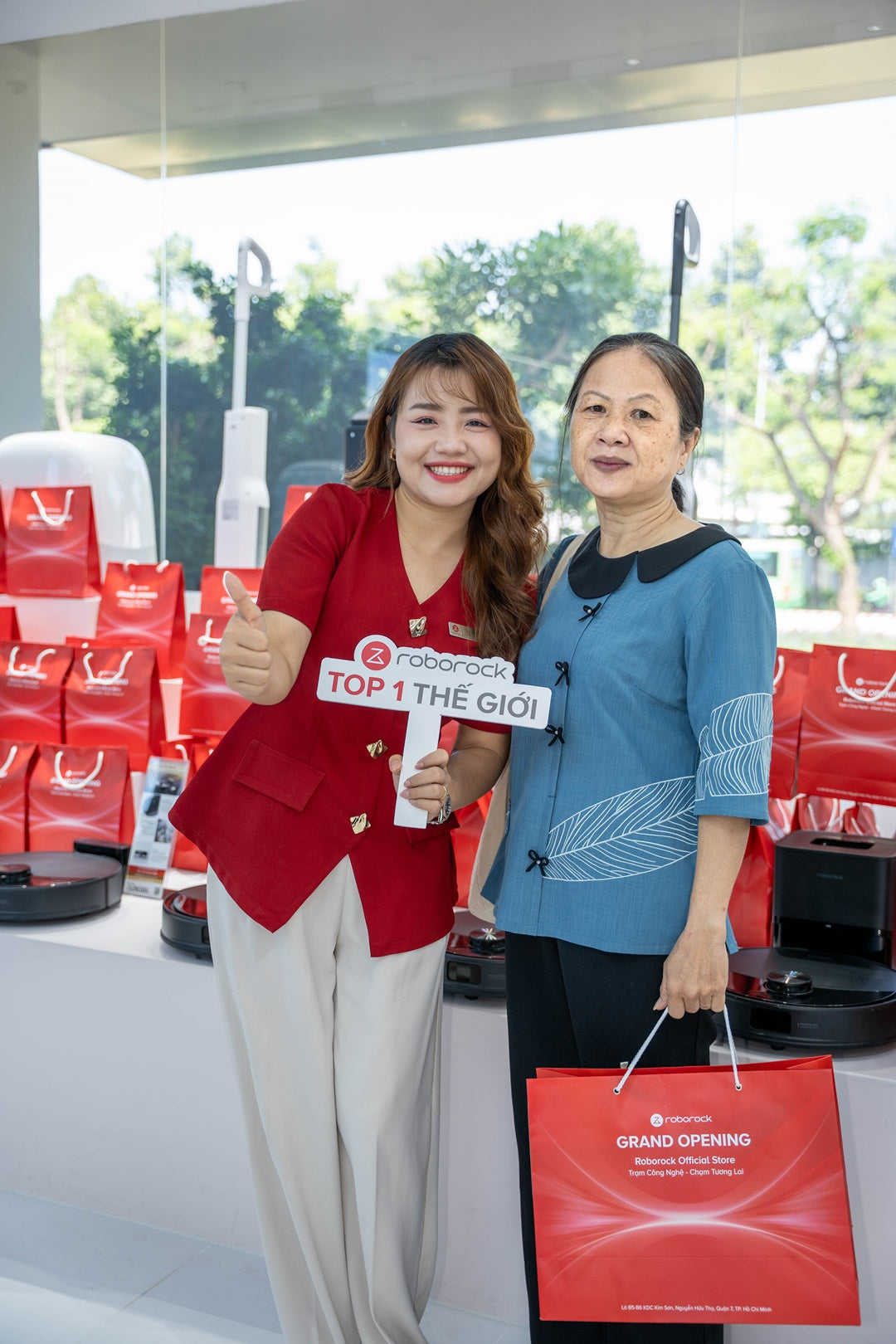 Chỉ cần check-in tại sự kiện, khách tham dự sẽ nhận ngay ô cao cấp, ly giữ nhiệt và túi vải Roborock. Nhiều người hào hứng chụp ảnh với robot hút bụi thông minh và máy hút bụi lau nhà nước nóng mới của hãng để vừa lưu kỷ niệm vừa chia sẻ trên mạng xã hội. Không khí kết nối giữa khách hàng và thương hiệu được tạo nên một cách tự nhiên, vui tươi.