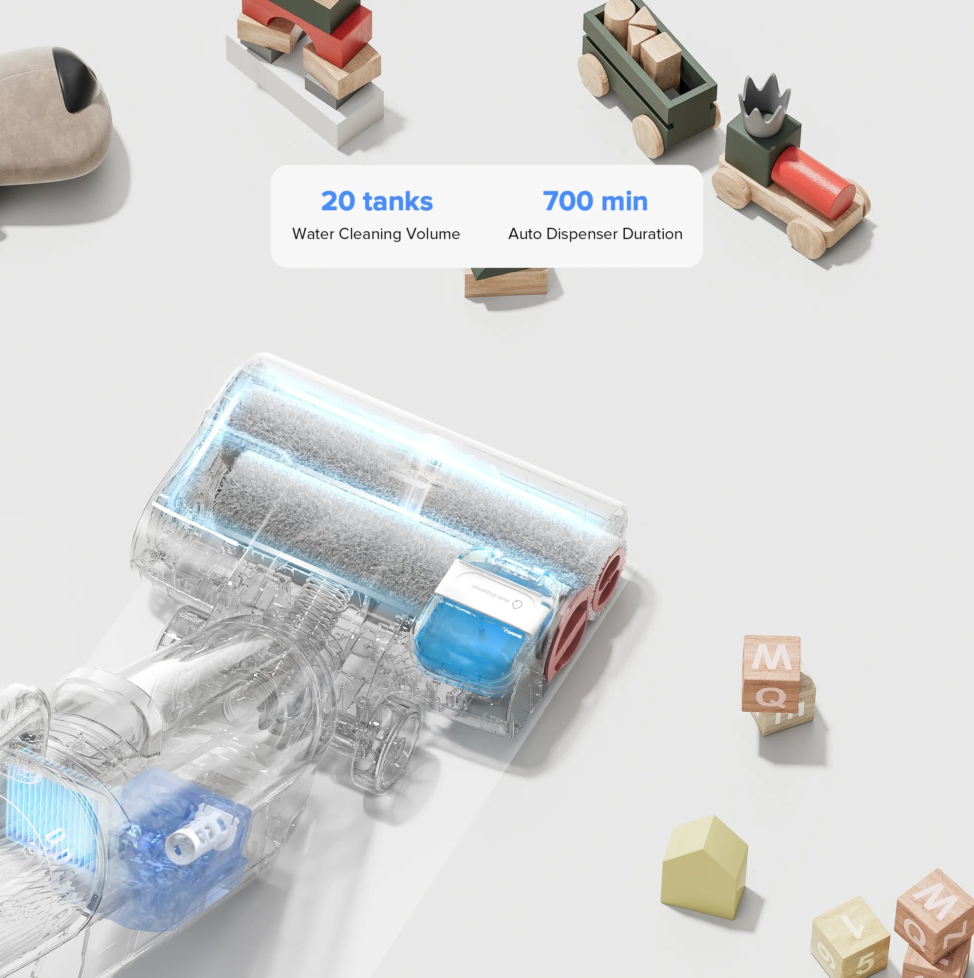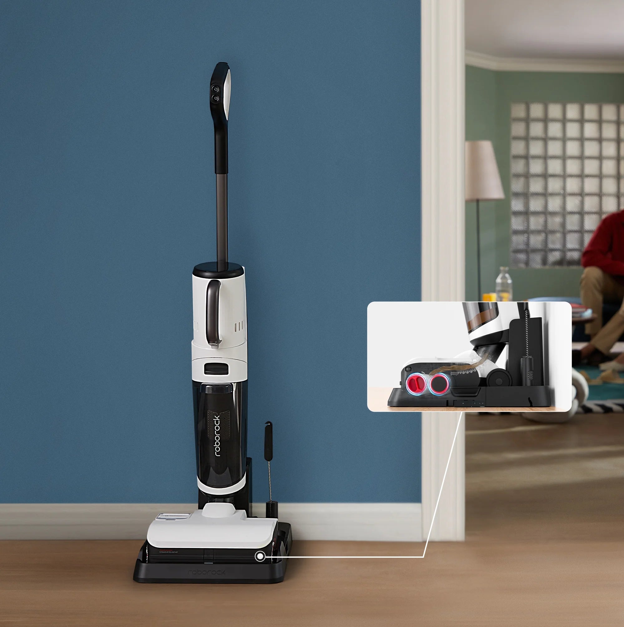 • Viên pin hiệu suất cao hơn 30% so với dòng Roborock Dyad, hộp chứa rác, bình nước sạch và nước bẩn dung tích lớn