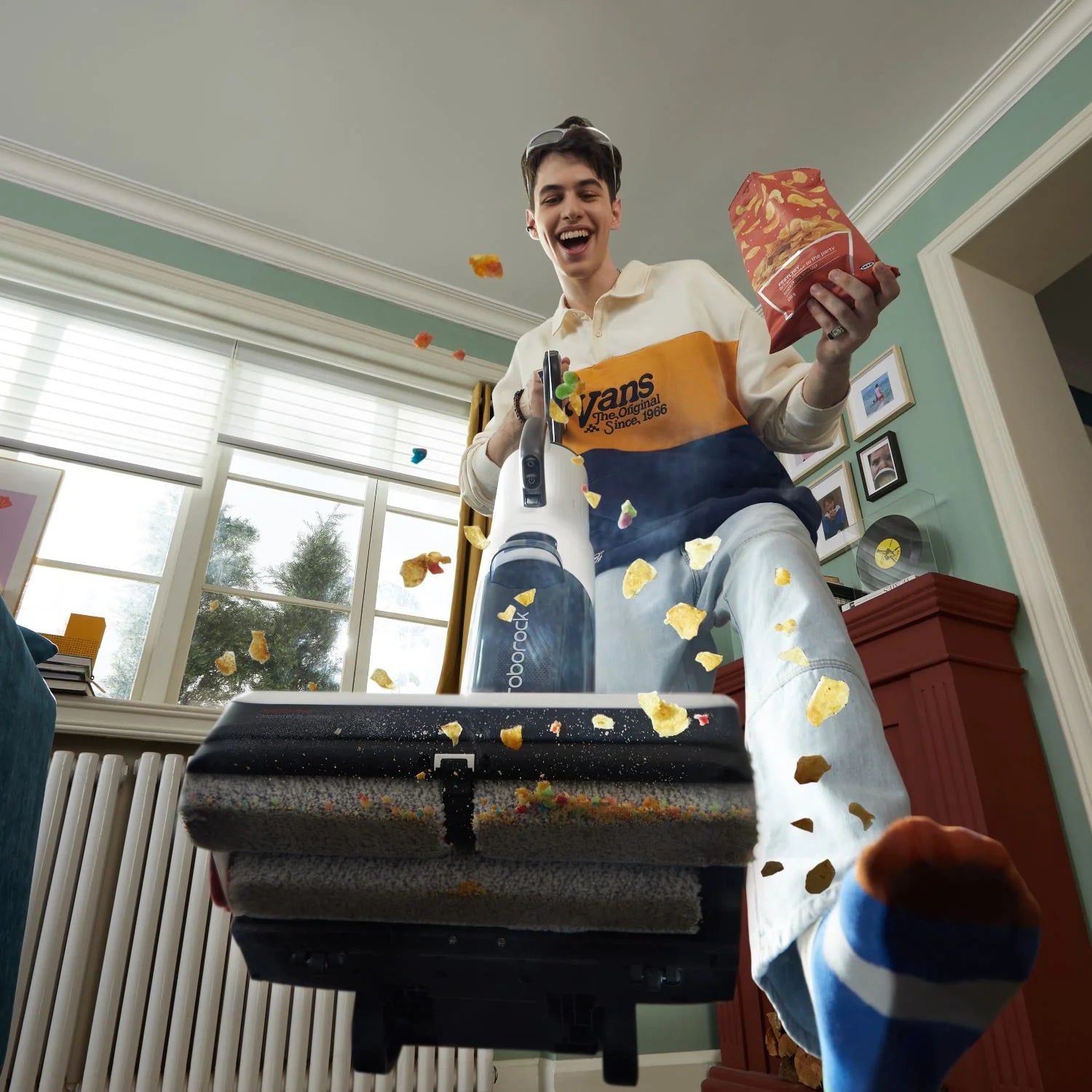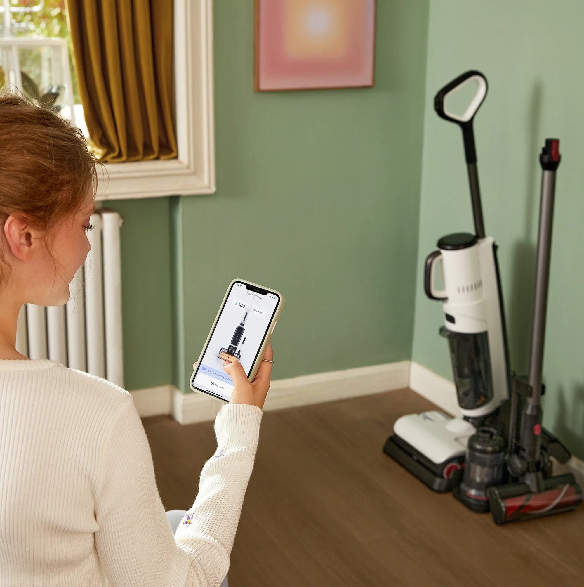 Con lăn được sấy khô tự động để hạn chế mùi hôi, bạn có thể dễ dàng lên lịch sấy khô trên ứng dụng Roborock.