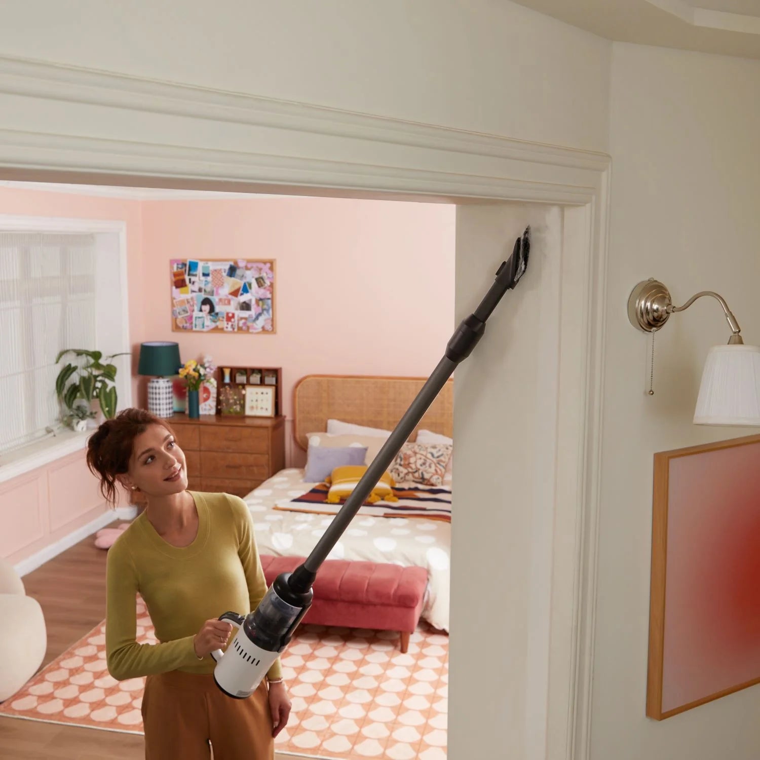 Thiết kế đầu làm sạch 2 trong 1 giúp bạn tiết kiệm không gian, dễ dàng làm sạch các ngóc ngách nhỏ trong nhà và loại bỏ bụi bẩn trên vải.