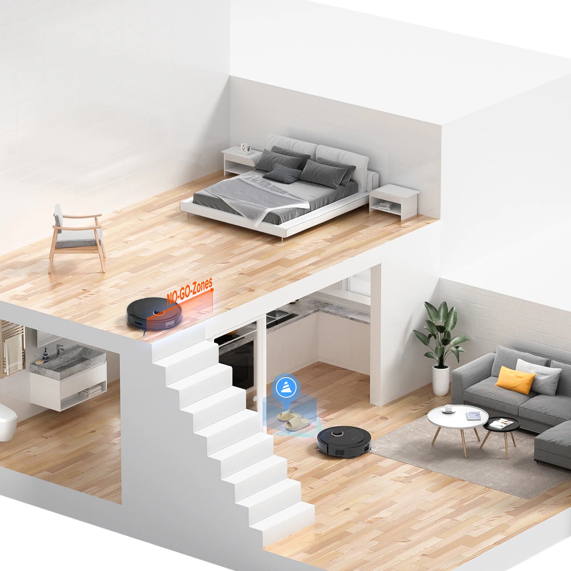 Phát hiện và tránh chướng ngại vật chính xác, không cần phải sắp xếp đồ đạc trước mỗi lần lau dọn.