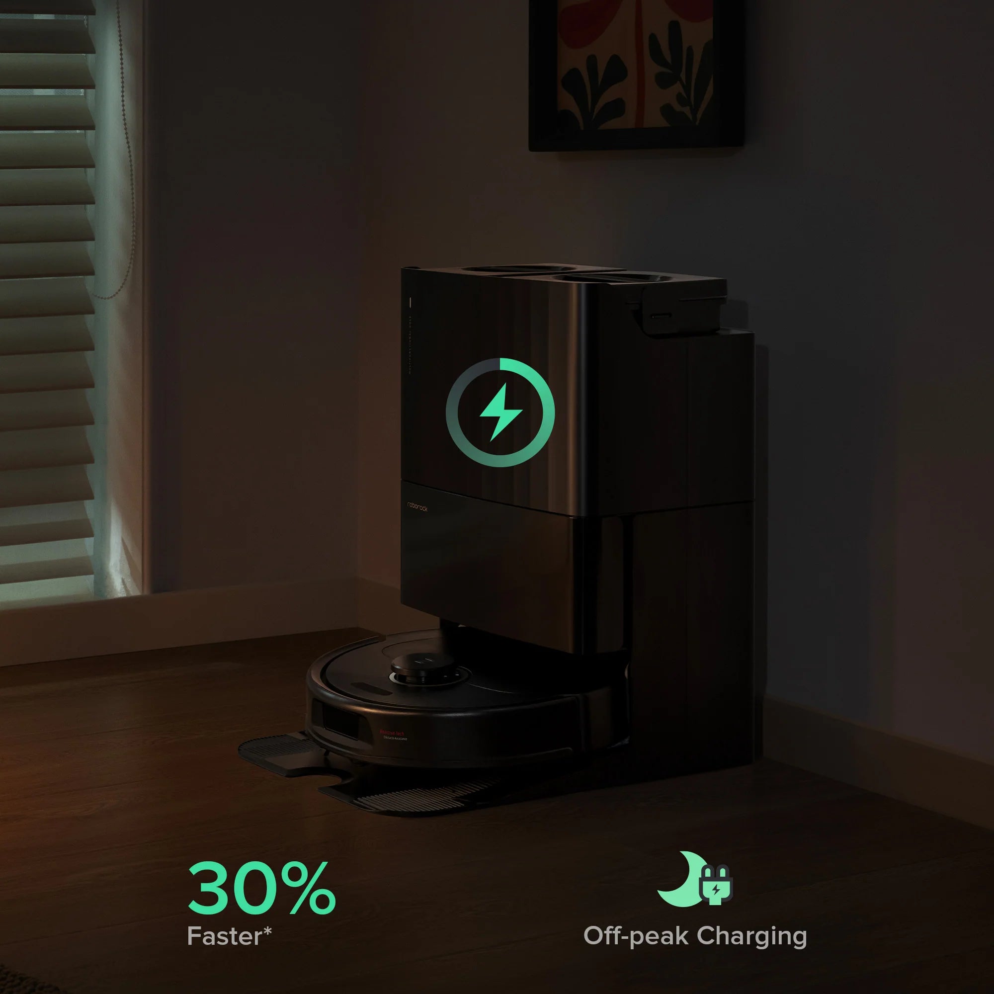 Tiếp tục lại quá trình làm sạch với tốc độ sạc nhanh hơn 30%* so với trước đây và tiết kiệm tối đa mức tiêu thụ điện năng bằng cách sạc trong giờ thấp điểm. Hành động nhỏ vì môi trường.