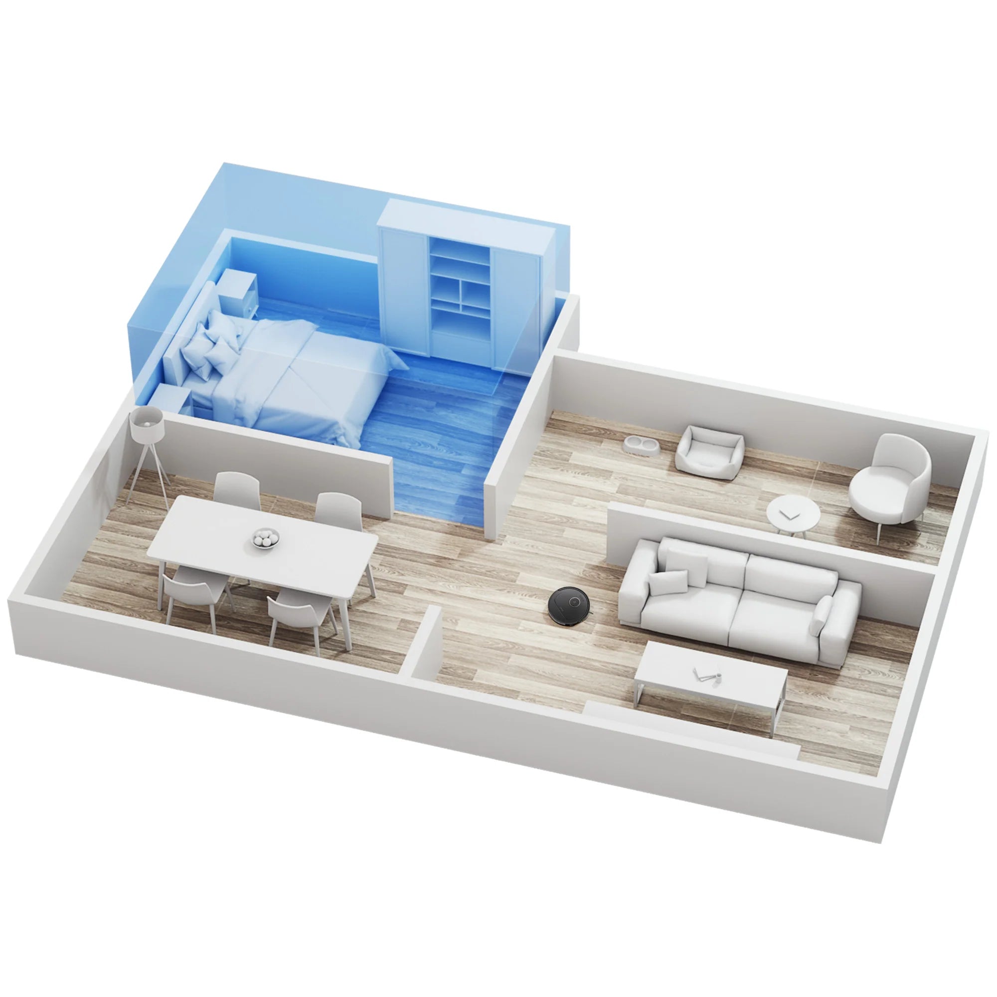 Robot hút bụi nhanh chóng quét không gian trong nhà, kể cả trong điều kiện thiếu sáng hay đủ sáng và vẽ bản đồ để tối ưu lộ trình làm sạch.
