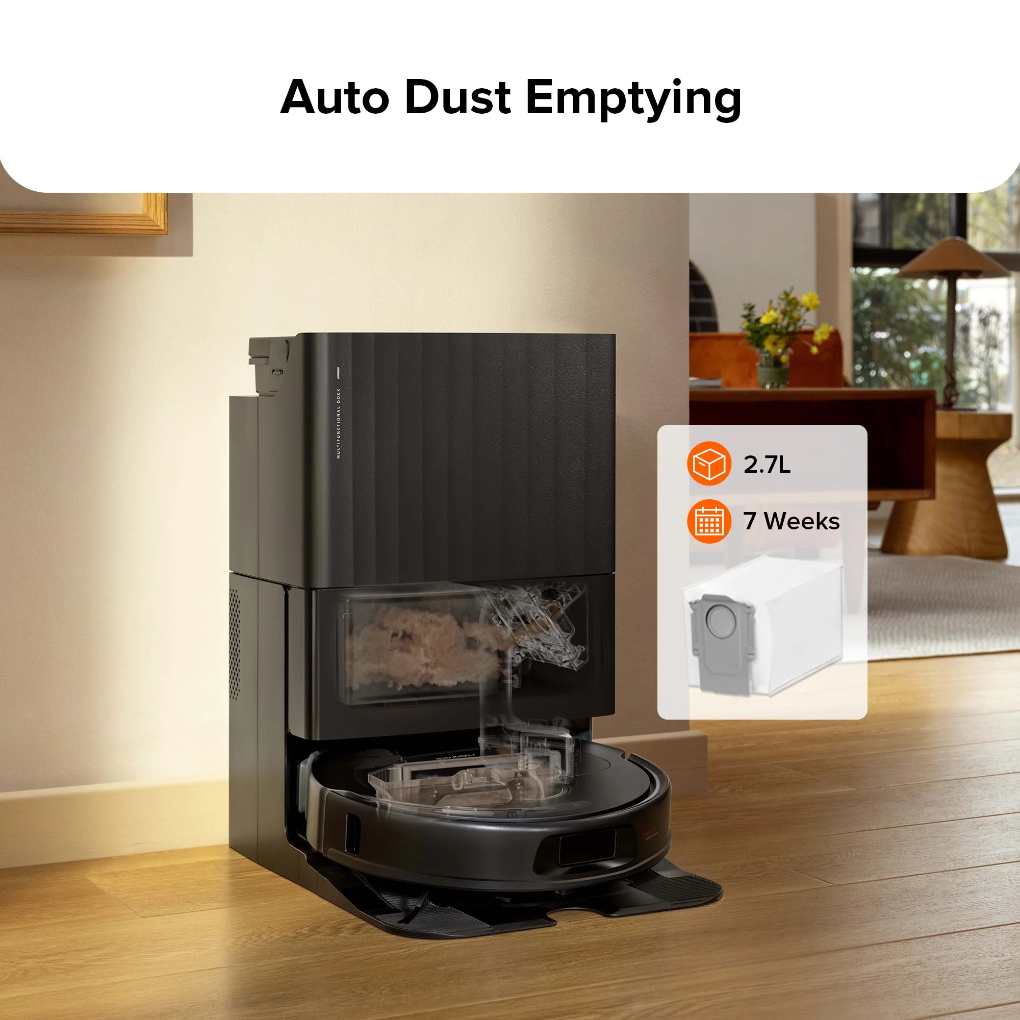 Thu thập bụi tự động trong 7 tuần* mà không cần đổ.