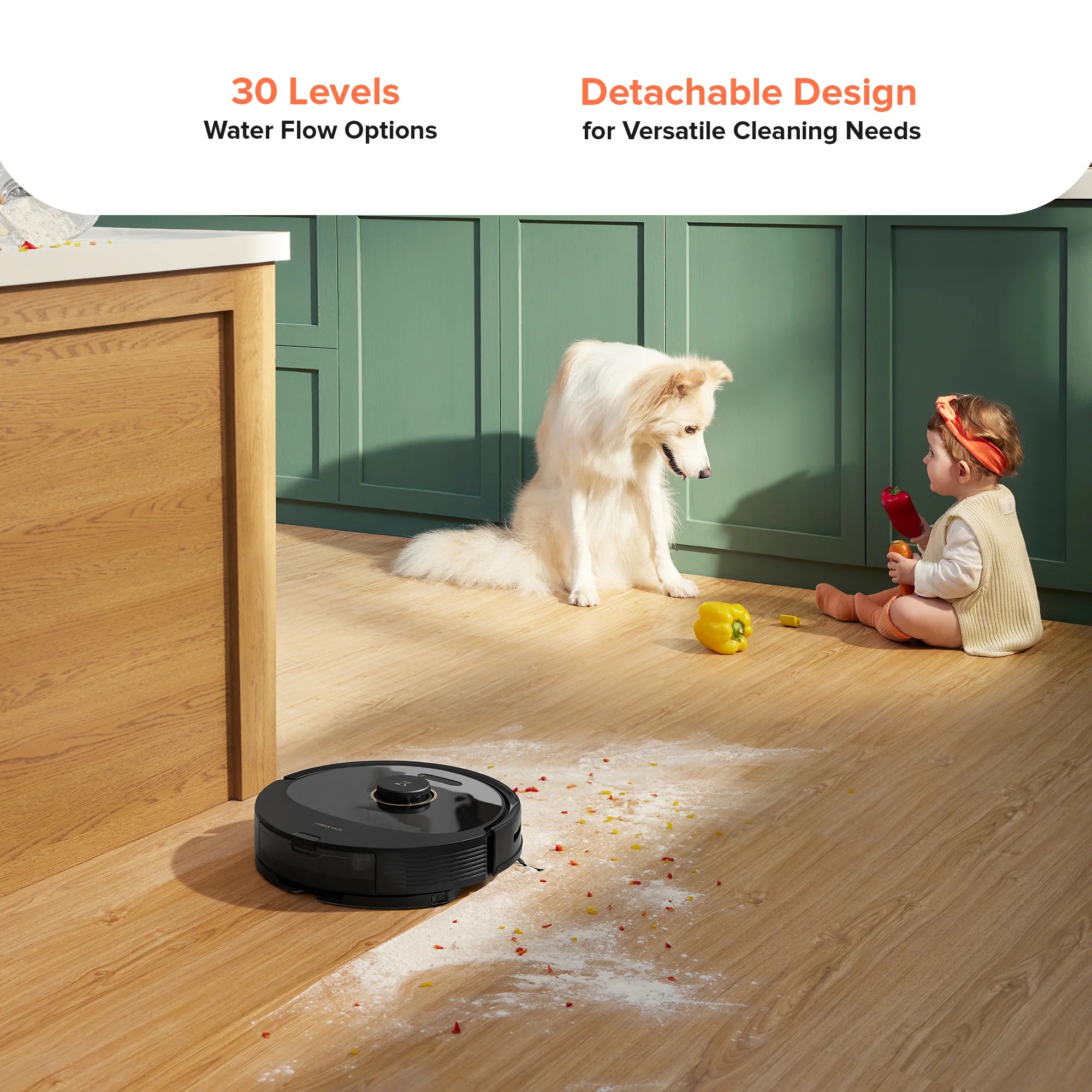 Với 30 cấp độ nước, Q8 Max sở hữu cơ chế hút bụi và lau nhà đồng thời để hút được hạt bụi với kích thước nhỏ, điều mà cơ chế hút bụi thông thường có thể bỏ sót.