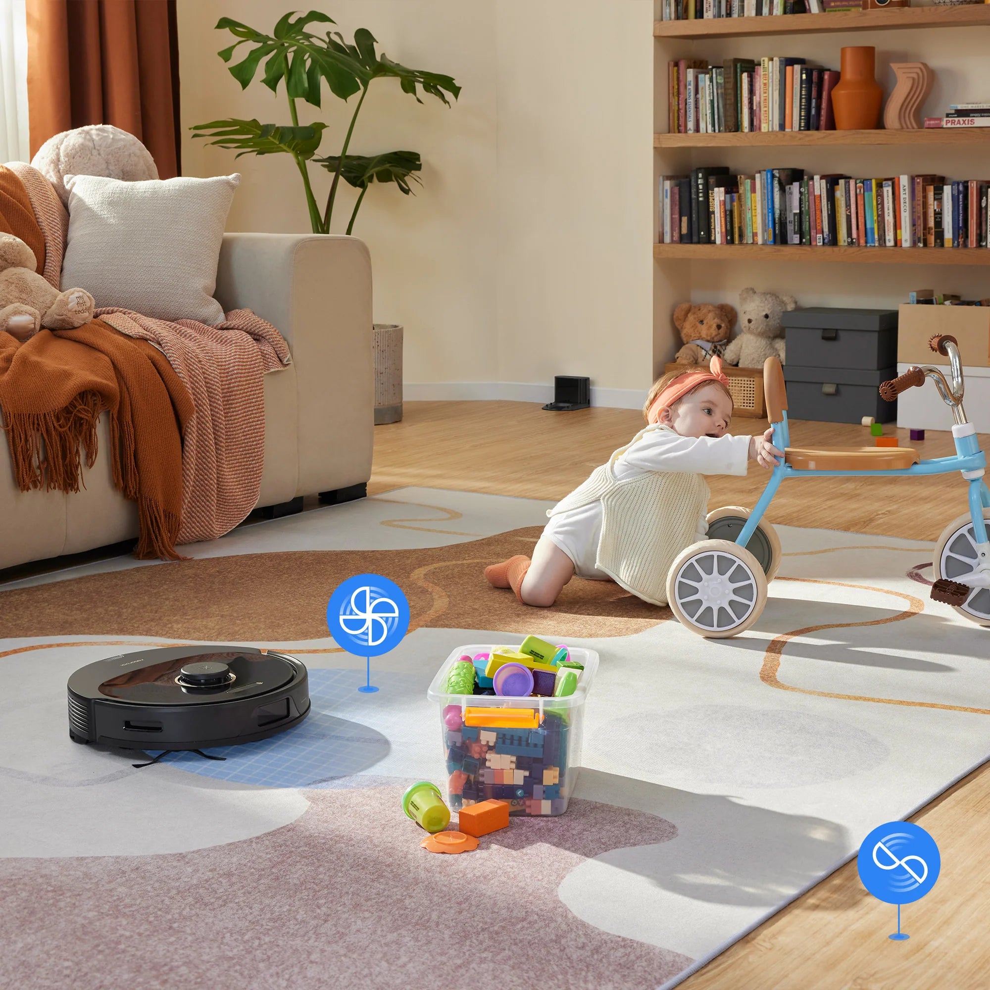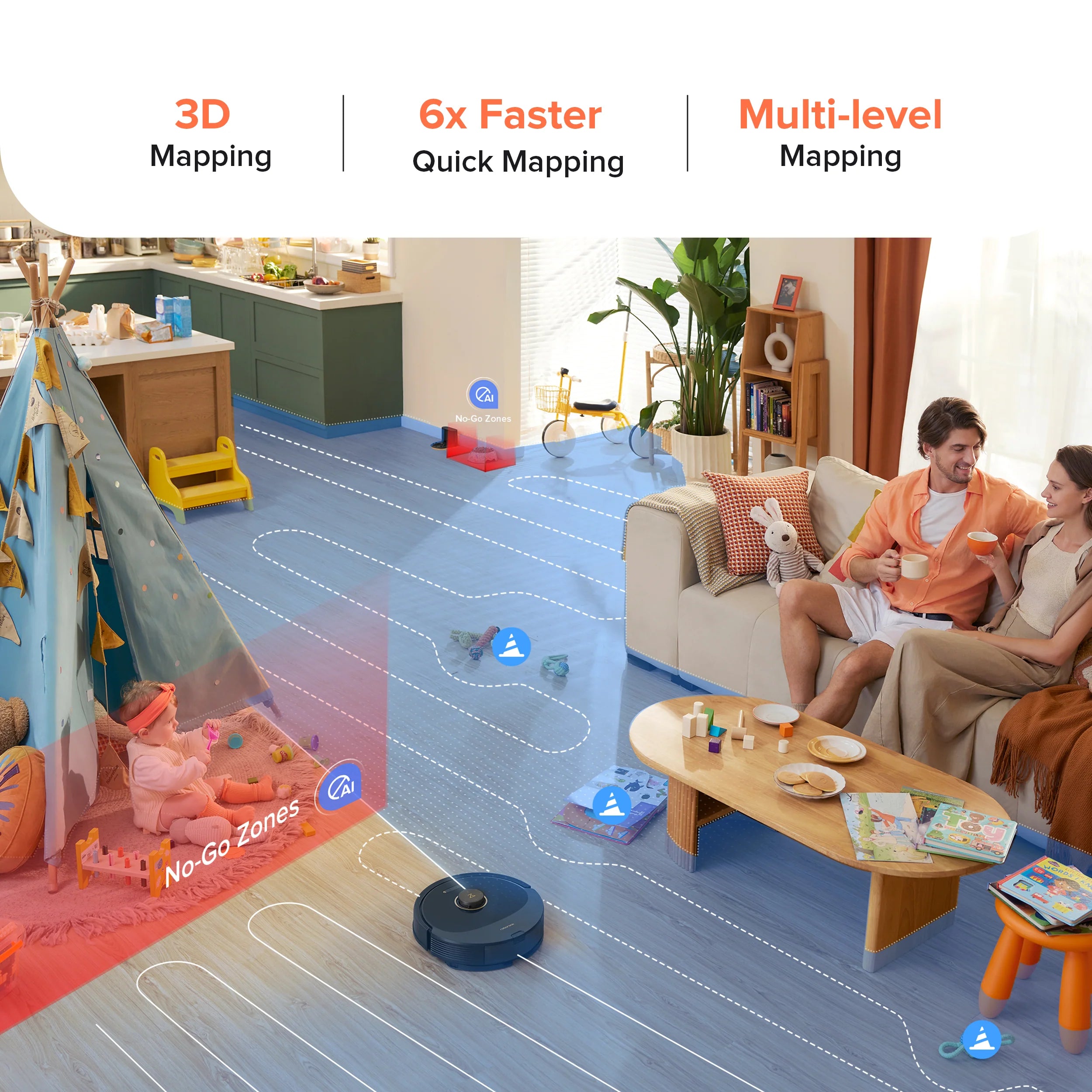 Quét và tạo bản đồ chi tiết để tìm ra tuyến đường, giúp tối ưu việc dọn dẹp nhà cửa của bạn, hút sạch mọi bụi bẩn.