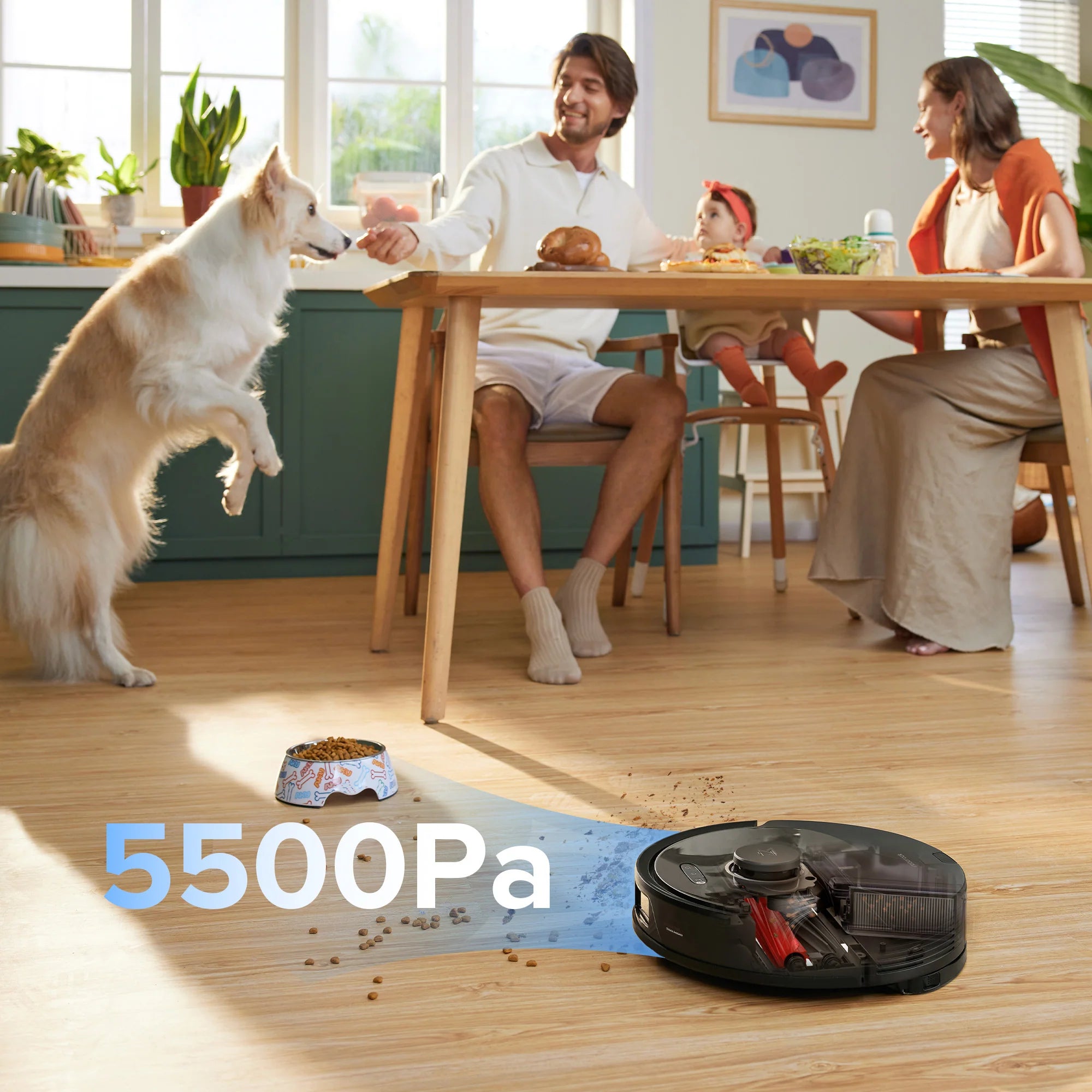 - Lực hút cực lớn 5.500 Pa, dễ dàng hút sạch bụi bẩn khỏi các loại sàn khác nhau