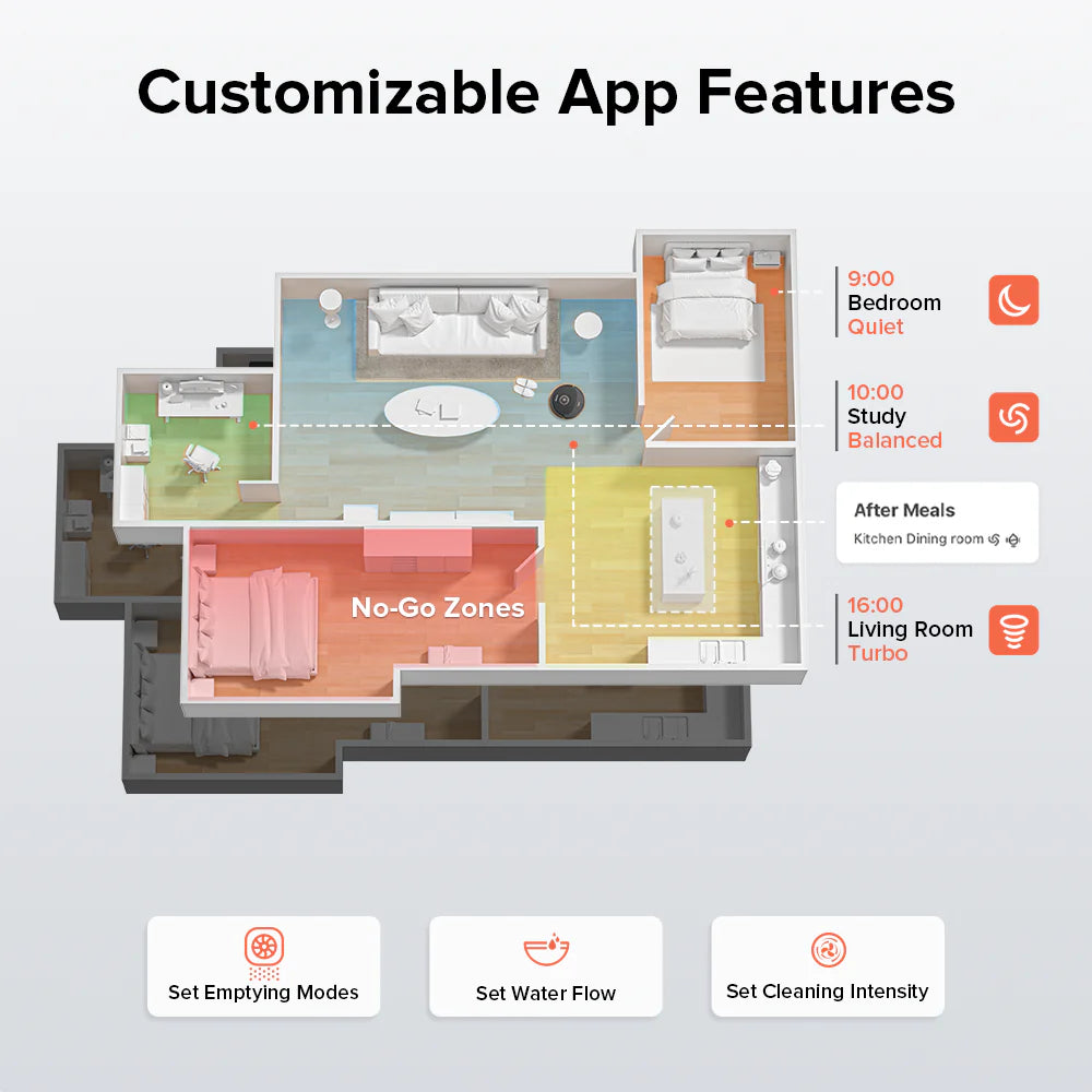 Tuỳ chỉnh thời điểm robot hút bụi làm sạch thông qua việc đặt lịch trình cho các khu vực cụ thể.