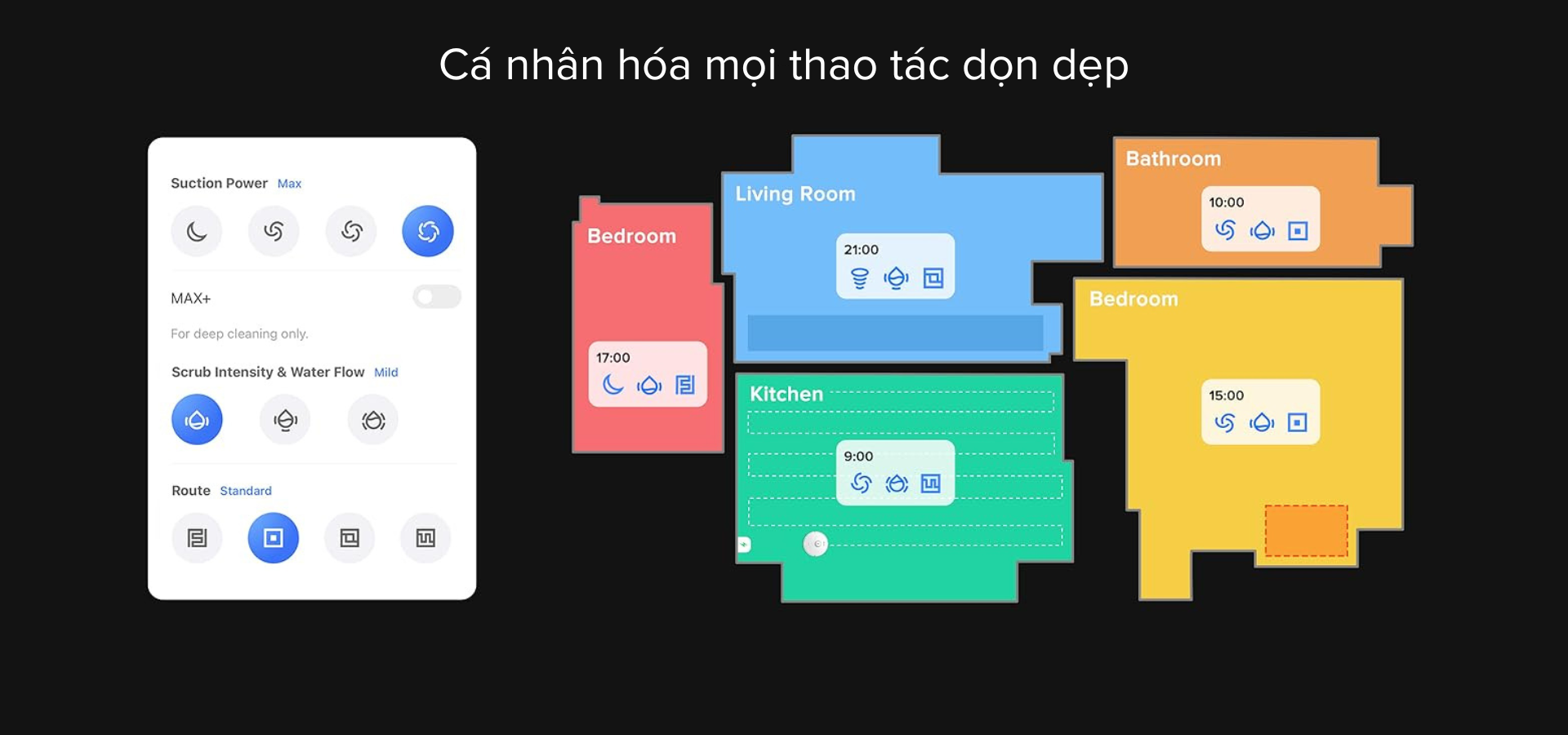 Chỉ cần chạm vào điện thoại và để robot hút bụi bắt đầu làm việc theo ý muốn của bạn. Tận hưởng trải nghiệm dọn dẹp không âu lo với Roborock App!